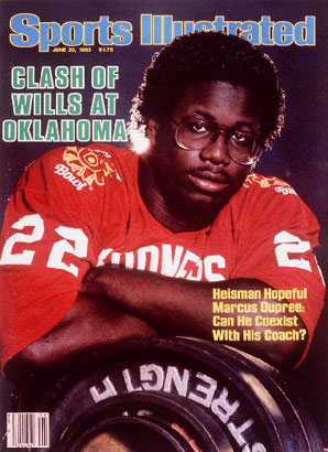With Heisman Trophy anticipation in the air, Dupree was featured on the June 20, 1983 cover of Sports Illustrated, but continuing conflicts with the Oklahoma coaching staff prompted him to quit the team midway through his sophomore year. In March '84 he signed a five-year, $6 million contract with the USFL's New Orleans Breakers and had a respectable, though not spectacular, first season. The next year he injured his left knee, ending his USFL career. Out of football for five years, Dupree rehabbed his knee back in Philadelphia and ended up making the Los Angeles Rams as a journeyman running back. He retired after two seasons, and then faded from the national scene and into the workaday world.